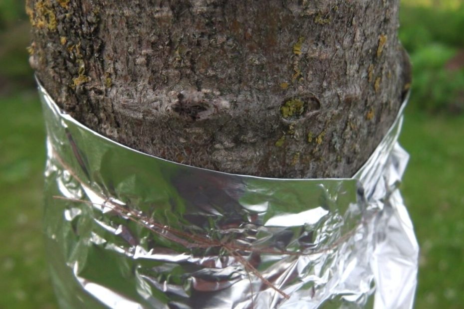 • Insektenabwehr. Der Glanz der Folie stört viele Insekten, die ihre Eier auf der Rinde ablegen. So verringert sich im Frühjahr die Anzahl der Schädlinge und das Risiko von Schäden an den Knospen und einer Infektion der jungen Triebe.